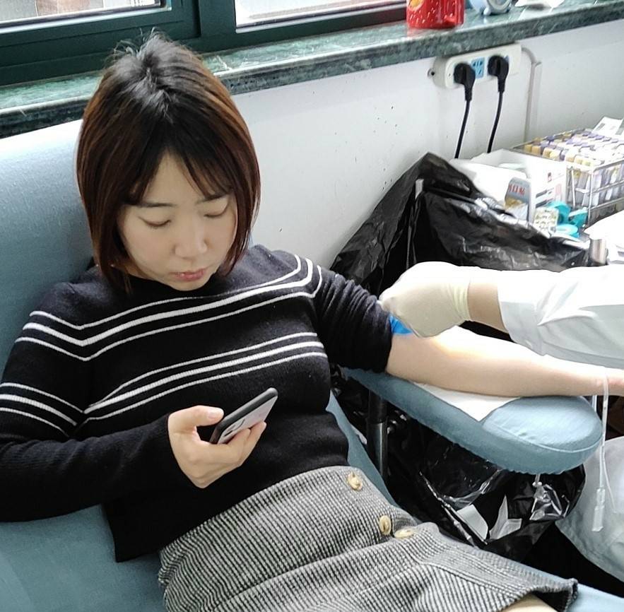 虽然天气寒冷,但大家热情高涨。参加献血的员工中既有久经血场的“老司机”,也有初次见血的“新手”,随着填表、验血、初检、登记、采血等一个个步骤的完成,满含爱与奉献的热血奏着生命的赞歌,从员工们的手臂缓缓流向储血袋,流向爱的远方。热血有限,真情无价,他们用行动诠释了大爱无疆——我不知道你是谁,但我知道你需要我的挽臂!